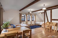 - 4 dwusypialniowe apartamenty rodzinne z łazienkami,